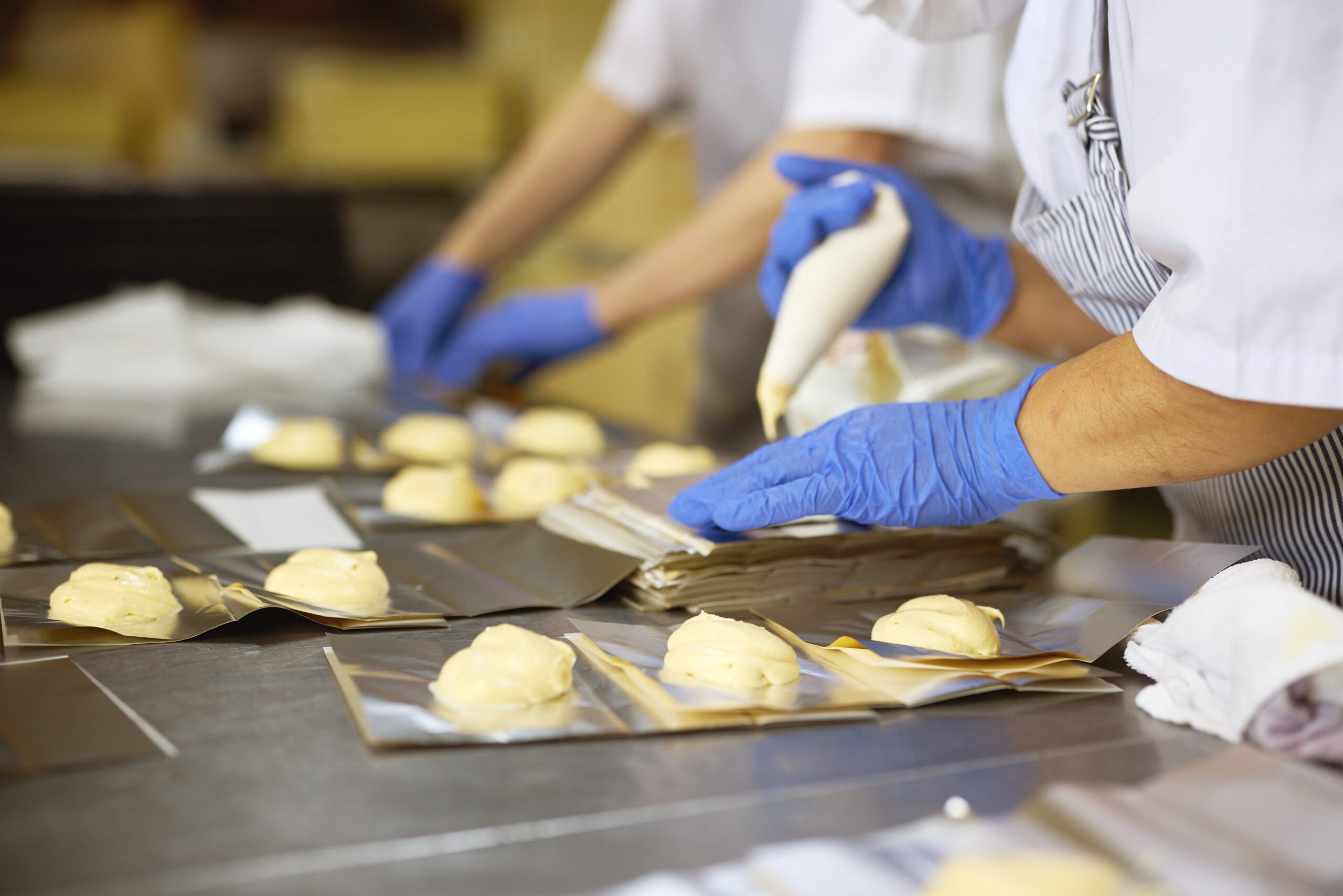 刻んだ栗を練り込んだ生地をホイルに絞り出したら、折り紙のように「チルミー」の形に折りたたんでいく。ほとんどの工程は、昔から変わらず人の手でおこなう。