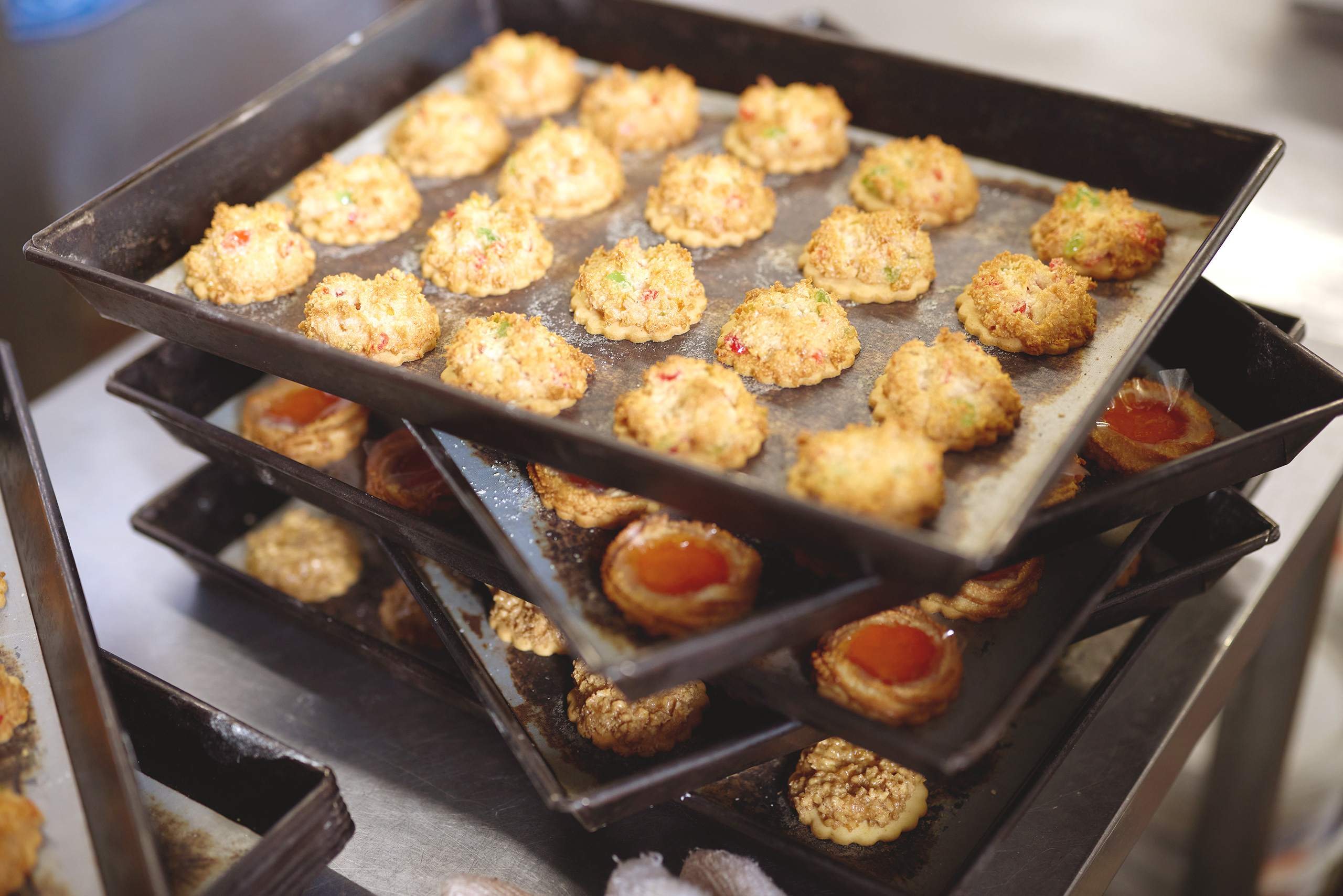 型抜きして固めに焼いたクッキー生地に、絞りやすいよう調整したやわらかめの生地をのせて焼き上げる。この「二度焼き」しているかどうかが「ロシアケーキ」の定義になるよう。