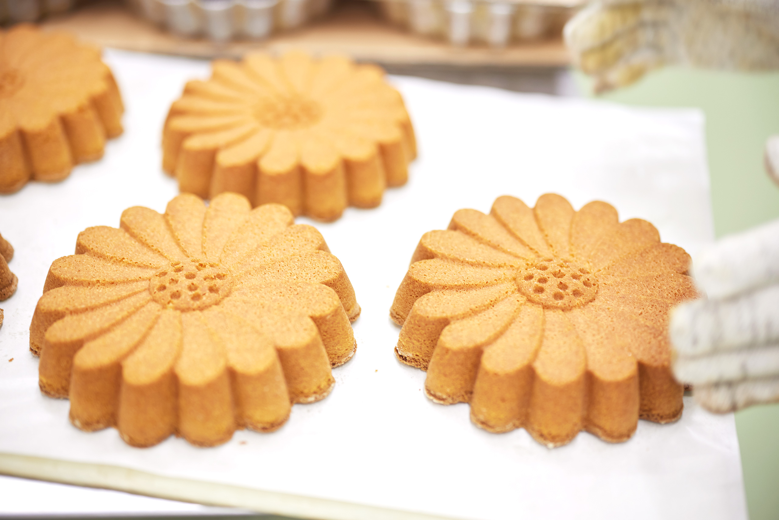 そしてできた生地を、分厚いマーガレットの焼き型に流し込み、じっくりと焼き上げる。