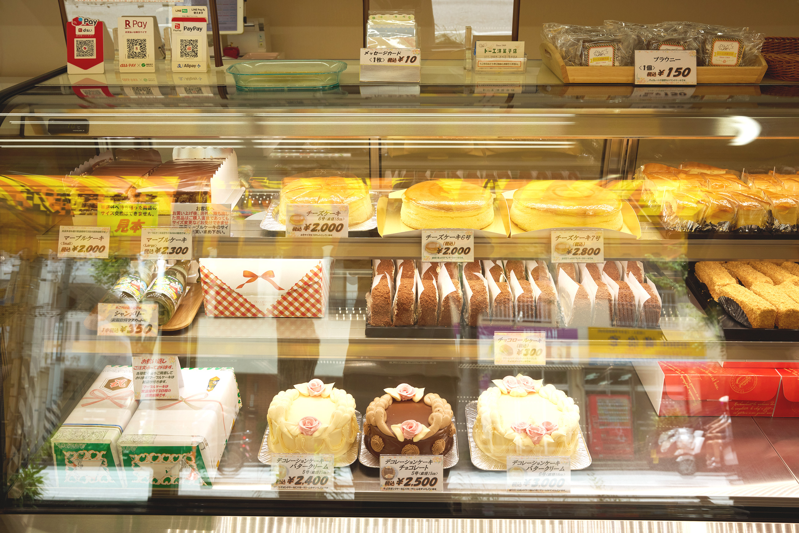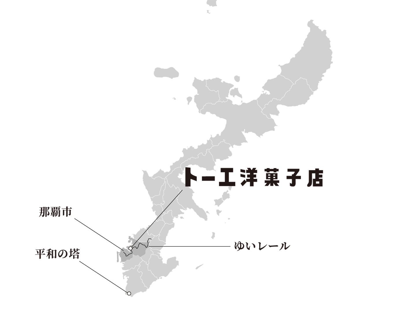 商店街の通り沿いにある『トーエ洋菓子店』。与儀の洋菓子屋さんといえば、必ずと言っていいほど名前が上がる地元の名店だ。