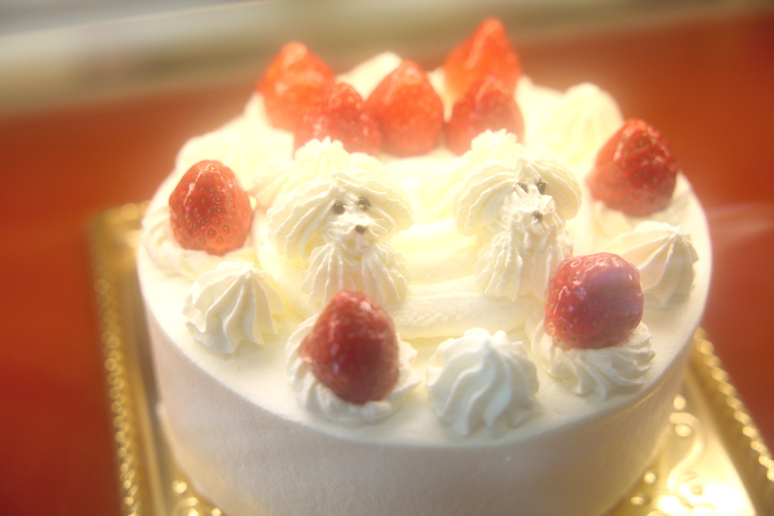 人気のいちごショートのホールケーキ「わんわん物語」。店内製造だから、商品にないケーキも、相談すれば、つくってもらえることも。