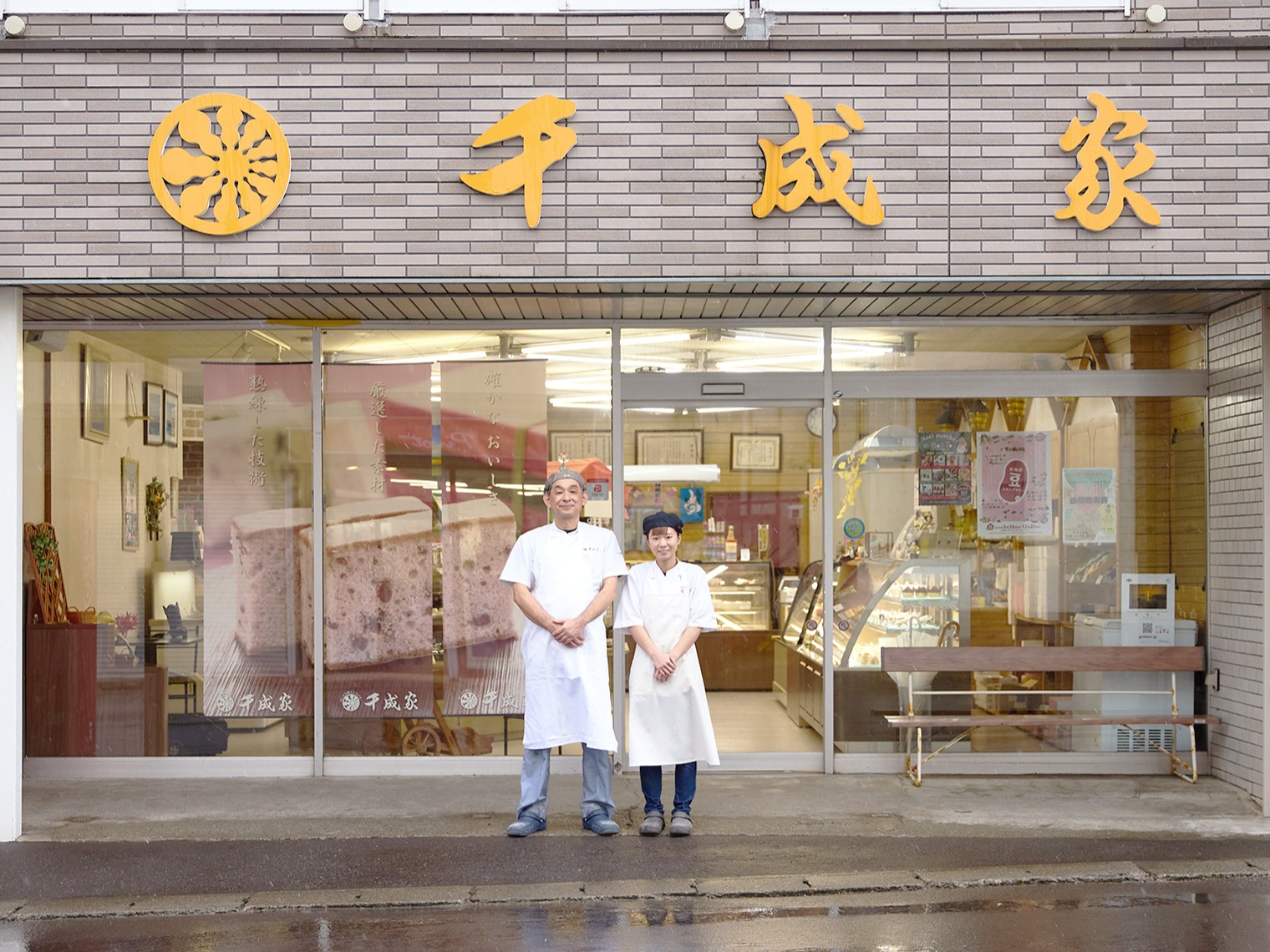 そんな町の中心に、ひときわ笑顔があふれるお店がある。和洋菓子の老舗『千成家』だ。お店のモットーは「楽しさの輪を広げる」。