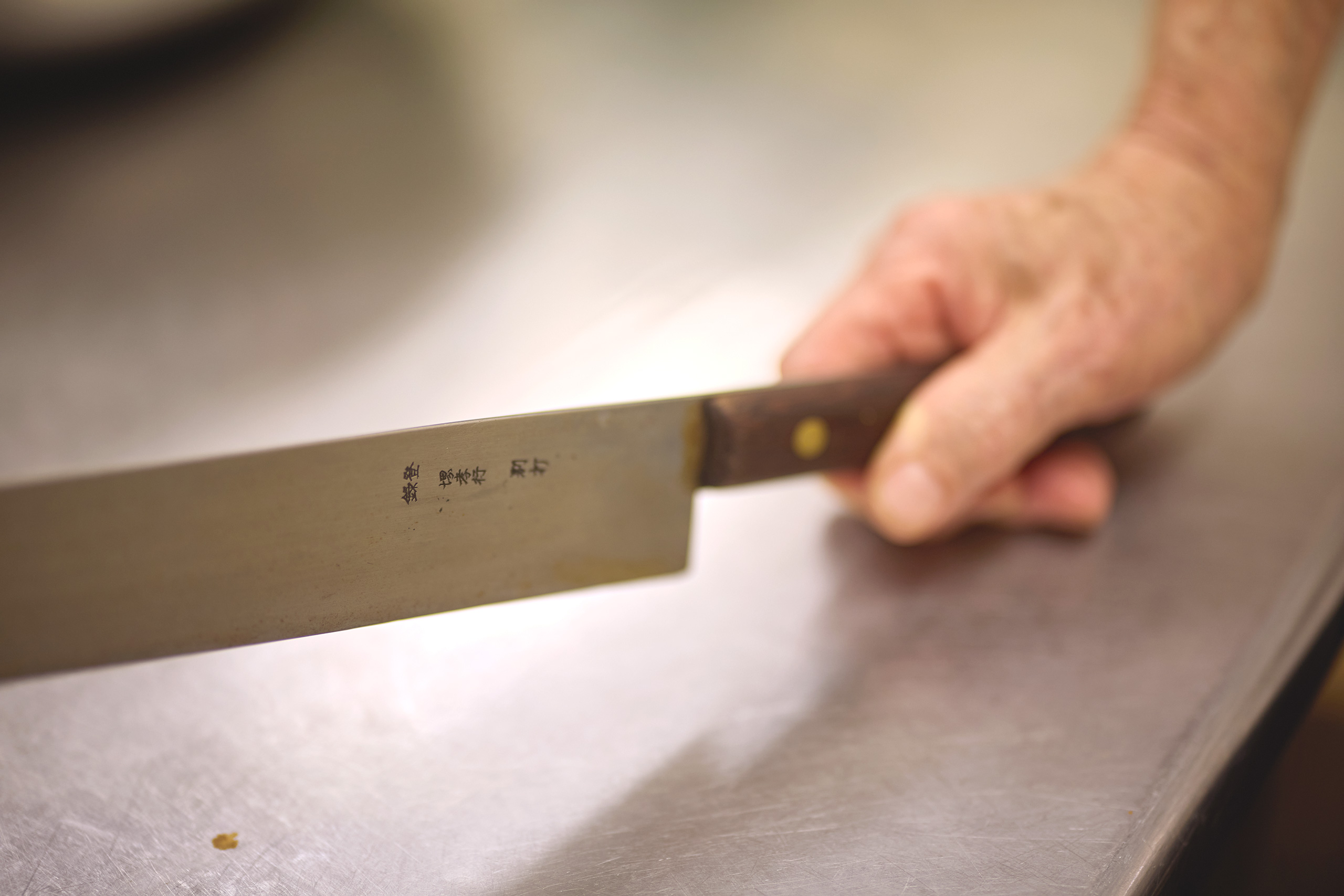 仲田さんは、モンブランなどに使っている栗を、この長包丁で細かく切り刻んでいくという。